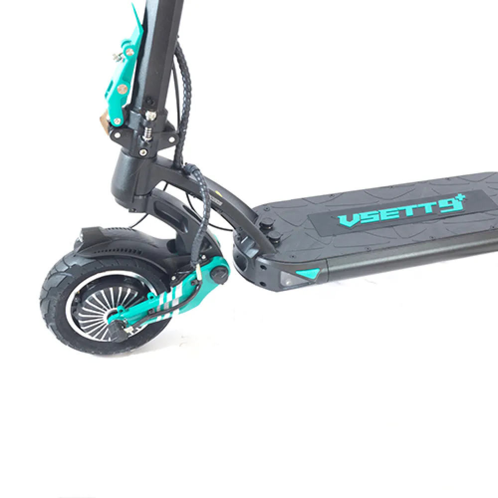 VSETT 9+ - мощный полноприводный самокат. Благодаря своей подвеске и увеличенному размеру колёс, он с лёгкостью преодолевает любые препятствия и способен проезжать по самым разным поверхностям.